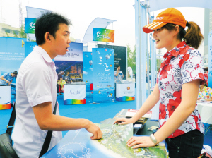 | 8月12日,三亚旅游地产推介会在成都万达广场开幕,靓丽的现场吸引了成都市民。 本报记者 刘贡 摄 |