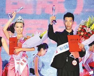 本报海口8月14日讯 (记者戎海)2011第十届精功(国际)模特大赛全国总决赛,13日晚在海口美视五月花广场落幕,来自全国18个赛区的80余名男女选手集体登场,为观众带来了一场视觉盛宴。经过三轮激烈角逐及才艺展示等环节比拼,最后,来自成都赛区的任乾和来自武汉赛区的钱彩虹分获男女组冠军,大赛还同时评出了4个单项奖和男女十佳选手。