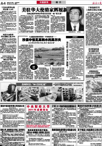 海南日报 中国新闻 004 2011-08-151 2011年08月15日 星期一