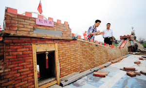 沈阳七旬老汉在自家房顶用砖头砌出8米“空中地铁”
