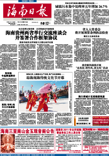 海南日报 首版 001 2011-08-161 2011年08月16日 星期二