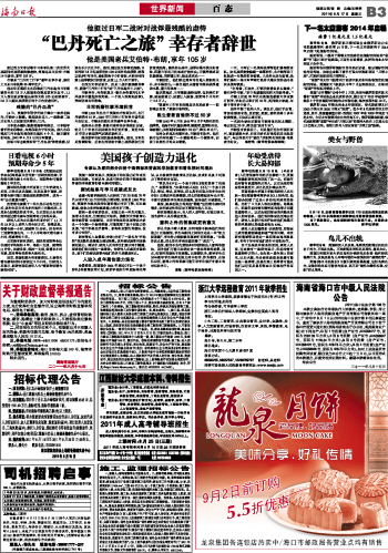 海南日报 世界新闻 011 2011-08-171 2011年08月17日 星期三