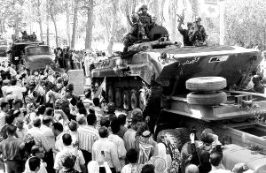 8月16日,叙利亚士兵从代尔祖尔市撤离。 叙利亚军队装甲部队16日开始从东部动乱城市代尔祖尔市撤离,返回军营。 新华社/法新/HO/阿拉伯叙利亚通讯社