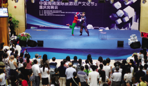 第四届中国海南国际旅游地产文化节重庆房展会,除了海南各大房地产企业的名盘靓楼尽显风流之外,期间引人关注的还有精美赠礼、连环大抽奖,多姿多彩的开幕式、热血沸腾的山城舞狮、青春靓丽的超模比基尼秀,风情浪漫的夏威夷乐队弹唱……丰富多彩的文艺表演及观众互动活动,给重庆市民带来了一场声色俱全的文化盛宴。