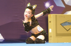24号选手表演的川剧《变脸》以地方传统戏曲的音乐魅力和娴熟的川剧脸谱变脸技巧,赢得观众的阵阵掌声;60号选手11岁的胡曦表演的舞蹈《狩猎》舞技专业,动作优美;57号选手二人组合小龙康康的《街舞》国际化元素十足;最绝的是54号选手5岁的汪好驭洲,穿着黑猫戏服,拖着条俏皮的长尾巴,在舞台上跳起了引人捧腹的《懒猫》,舞技娴熟,天真可爱,一举夺得了冠军,为父母赢得了海南重庆双飞豪华游大奖。