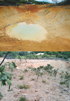 广东揭西县接受媒体监督 整改非法盗采稀土行为 拼版照片:上图为经过开采后一片狼藉的现场(8月8日摄),下图为经过整治后的现场(8月16日摄)。 新华社“中国网事”栏目8月12日播发《网曝暴利驱动广东揭西县非法盗采稀土触目惊心 记者实地调查“根治之困”》一稿后,引发社会及网民强烈反响。揭西县委、县政府近日专门发函“中国网事”表示,将虚心接受媒体监督,深刻查找监管漏洞,举一反三,迅速整改。 新华社记者 梁志玮 摄