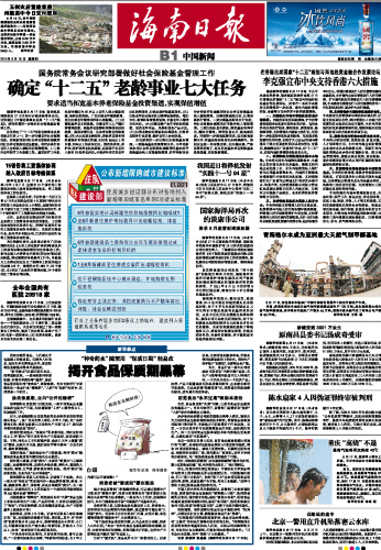 海南日报 中国新闻 009 2011-08-181 2011年08月18日 星期四