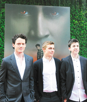 8月17日,迪士尼新片《新天师斗僵尸》领衔主演安东·尤金(左)、主演克里斯托夫·梅兹-普莱瑟(右)和戴夫·弗兰科在洛杉矶举行的首映式上合影。当晚,该片在美国好莱坞著名的电弧光剧院首映。 新华社记者 柳丝 摄
