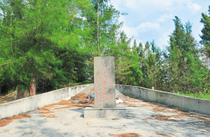 | 儋州白马井海滩上竖立着渡海先锋营登陆点纪念碑。 本报记者 王凯 摄 |