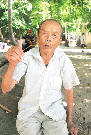 | 97岁的王帮喜老人回忆当年接应渡海部队时的情形。 本报记者 王凯 摄 |