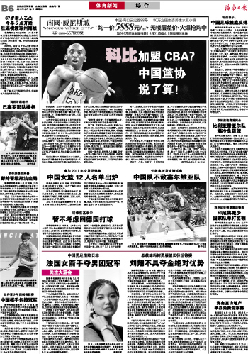 海南日报 体育新闻 014 2011-08-191 2011年08月19日 星期五
