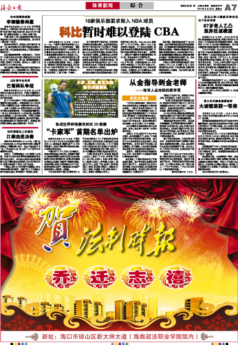 海南日报 体育新闻 007 2011-08-201 2011年08月20日 星期六