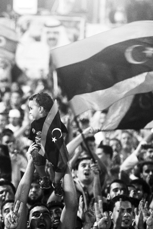 | 八月二十一日凌晨,反对派支持者参加在利比亚班加西举行的游行集会。 新华社发 |