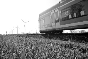 8月22日,德国铁路公司公布了一列火车在梅尔基施·林登风力发电厂行驶的照片(照片摄于2011年4月)。 德国铁路年客运量19亿人,年货运量4.15亿吨,改用可再生资源运营全国铁路绝非易事,德国铁路公司正在努力扩大风电和水电的使用比例,并积极研制利用各火车站屋顶进行太阳能发电的技术,此举获环保组织称赞。 新华社/路透