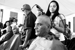 8月21日,在委内瑞拉首都加拉加斯,查韦斯的支持者在一次为查韦斯的健康祈福的活动中剃光头。 查韦斯因接受癌症化疗剃掉了头发,他的支持者21日在一次为查韦斯健康祈福的活动中也剃掉头发对其表示支持。查韦斯16日说,体内癌细胞没有扩散,但接受化学疗法治疗后身体变弱。 新华社/路透