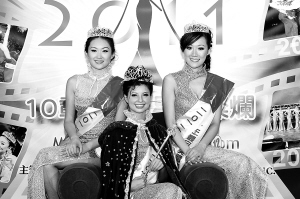 8月22日,在美国康涅狄格州举行的纽约华裔小姐总决赛上,海莉玲(中)夺得冠军,王丹妮(左)、吴梦頔(右)分获亚军和季军。 当日,2011年纽约华裔小姐总决赛在康涅狄格州举行,2000多名观众观看了比赛。 新华社发(龚文谟摄)