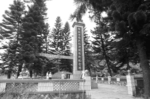 湿热的空气在此凝滞,苍翠的松柏环绕四周,一座纪念碑矗立在中间,碑的正面自上而下镌刻着13个遒劲的大字———“解放海南战役决战胜利纪念碑”。该碑由海南军区于1995年4月,即海南解放45周年时所建。纪念碑所在的澄迈县金江镇美亭墟一带,到处都是红色的土地,仿佛是被战争年代阵亡者的鲜血染红了一般。