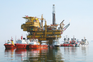 这是发生溢油事故的蓬莱19-3油田C平台。 新华社记者 罗沙 摄