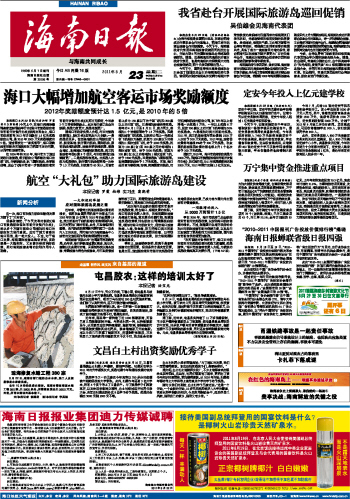 海南日报报业集团旗下媒体: 海南日报 | 南国都市报 | 南海网 | 南岛晚报 | 证券导报 加入收藏 | 设为首页