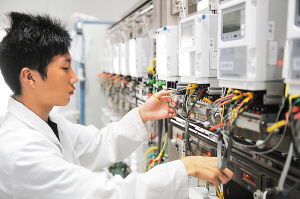 8月23日,技术人员在测试智能用电信息采集器,通过测试的采集器将安装到户,实现用电信息远程自动采集等多种功能。