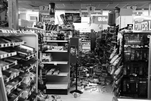 | 8月23日,弗吉尼亚州米纳勒尔镇,地震后一家超市内一片狼藉。 新华社记者 王丰丰 摄 |
