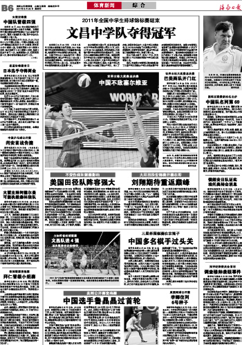 海南日报 体育新闻综合 014 2011-08-251 2011年08月25日 星期四