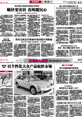 海南日报 本省新闻经济/直击金九车展海南日报报业集团六报一网全线出击 003 2011-08-251 2011年08月25日 星期四