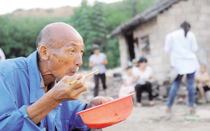 → 8月24日晚,在河南省淅川县滔河乡张庄村,移民赵天如在老房子前吃饭。这是他们家在位于南水北调中线工程水源地的老家所吃的最后一顿晚餐。 8月25日一早,包括他们在内的全村312户、1192人乘坐移民大巴,整体迁往数百里之外的河南省襄城县移民新村。随着这最后一批移民告别家园,标志着河南省南水北调库区移民16.2万人的集中搬迁工作基本结束,“四年任务,两年完成”的目标如期实现。 新华社记者 赵鹏 摄