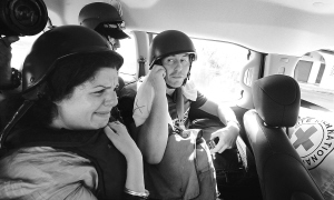 8月24日,在利比亚首都的黎波里,两位受困外国记者被国际红十字会人员接走。 当日,被困在利比亚首都的黎波里里克索斯酒店的外国记者已经被安全转移。 新华社/路透