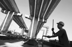 | 8月25日,在文昌市清澜大桥建筑工地,工人正在加紧施工。
