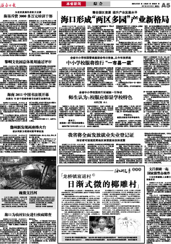 海南日报 本省新闻综合 005 2011-08-261 2011年08月26日 星期五