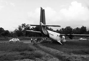 8月25日,在马来西亚沙捞越东部城市拉瓦斯,一架载有18人的小型飞机滑出跑道。