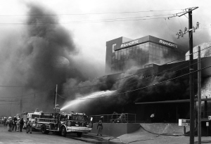 8月25日,一伙犯罪分子冲进墨西哥蒙特雷市“皇家赌场”,对在场人员进行扫射,随后向赌场内泼洒了大量汽油并点火。一名幸存者说,犯罪分子在10人左右,他们往赌场内泼洒汽油并开枪将其引燃。已经确认53人死于遇袭案,另有十几人受伤。 新华社/路透