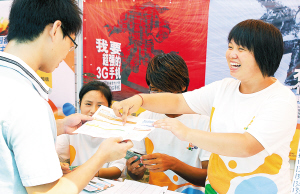 | 8月27日,3名海口经济学院药剂系的学生,正在校园内推销手机卡。