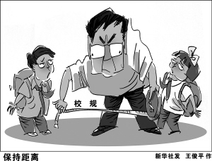 近期,网上一条“高中男女学生交谈距离不小于60厘米校规”的帖子,引发网友热议。这个由一匿名网友发的帖子称,保定市某中学为防止学生早恋制定了“精确到厘米”的该校规。经《燕赵晚报》记者采访核实,该校确实有该规定。该报记者调查同时发现,学生家长由于“担心早恋影响孩子学习成绩”,对于校方出台这样的措施,大部分持赞成或不反对的态度。