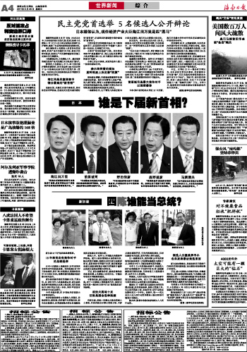 海南日报 世界新闻 综 合 004 2011-08-281 2011年08月28日 星期日
