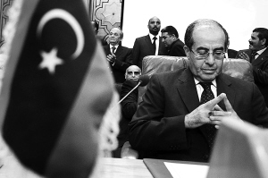 8月27日,在埃及首都开罗的阿拉伯国家联盟(阿盟)总部,利比亚“全国过渡委员会”执行委员会主席马哈茂德·贾布里勒(前右)出席会议。 阿拉伯国家联盟(阿盟)28日凌晨发表声明,同意恢复自今年2月以来暂停的利比亚在阿盟的成员资格,由利反对派“全国过渡委员会”派员担任驻阿盟代表。 新华社/法新