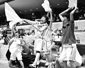 女篮亚锦赛决赛65:62胜韩国 中国队夺冠获奥运入场券 8月28日,在2011年亚洲女篮锦标赛决赛中,中国队以65:62战胜韩国队,夺得冠军,并获得伦敦奥运会的入场券。图为中国队替补席上的球员庆祝胜利。 新华社发