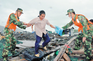 ①8月29日,福建马尾边防工作站官兵帮助台胞对停靠马尾港的轮船进行全面加固。②8月29日,福建省平潭县苏澳镇海上养殖区的渔民在当地政府部门工作人员和边防官兵的引导下紧急撤离上岸。③8月29日,渔民在福建连江黄岐中心渔港转移上岸。④8月29日,福建黄岐边防派出所官兵在帮助渔民搬运海产品。⑤8月29日,渔民在福建连江黄岐中心渔港转移上岸。⑥8月29日,福建黄岐边防工作站官兵在台轮停泊点帮助台胞加固船只。 (本栏照片:新华社发)