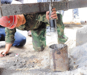 八月二十九日,救援人员第三次送下带有摄影头的救生舱。 新华社发