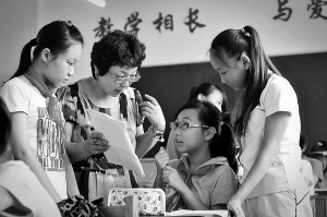8月29日,“新女四”实验班学生与班主任在课间进行交流。 当日,天津市第十一中学迎来“新女四”实验班首批58名新生。“新女四”实验班是天津市目前仅有的中学女生班,“新女四”实验班的学生除了要完成国家规定的相关课程外,还将学习礼仪、瑜伽、家政等课程。始建于1914年的天津市第十一中学前身为法国教会学校———圣若瑟女校,1951年改名为天津市第四女子中学,后更名为天津市第十一中学。 新华社发(游思行 摄)