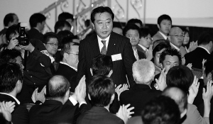 | 8月29日,在东京举行的民主党众参两院议员总会(党首选举大会)上,野田佳彦当选民主党代表后向与会者致意。 新华社/法新 |