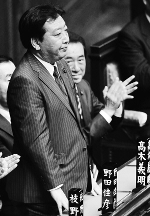 | 8月30日,野田佳彦(左一)在日本国会众议院首相指名选举中当选新一届首相。 新华社/法新 |