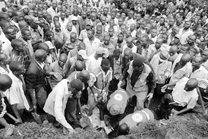 可能造成逾50人死亡 8月29日,在乌干达东部布兰布利的一个村庄,红十字会救援人员寻找遇难者的遗体。暴雨导致布兰布利多处地区29日凌晨发生泥石流,已经造成至少23人死亡。当地官员说可能有超过50人死亡。新华社发