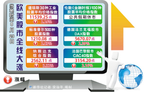 新华社纽约8月29日电(记者俞靓)由于飓风“艾琳”造成的损坏程度远远低于投资者预期,29日纽约股市在大量资金入场的情况下上涨,道琼斯指数上涨超过250点,纳斯达克指数上涨超过3%。