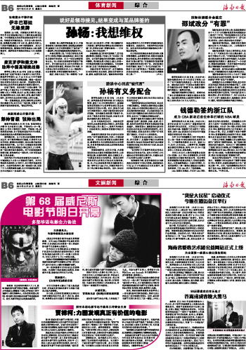 海南日报 体育新闻/文娱新闻 014 2011-08-311 2011年08月31日 星期三