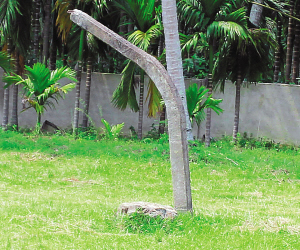 | 学校的篮球架损坏已多年。 本报记者 洪宝光 摄 |