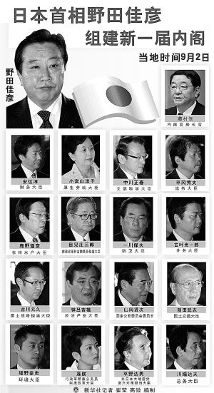 民主党前干事长代理、新任内阁官房长官藤村修上午发布17人新内阁名单。民主党前国会对策委员长安住淳出任财务大臣,上届内阁国家战略担当大臣玄叶光一郎出任外务大臣。两人现年分别为49岁和47岁,就日本政界而言,出任这类重要职务可谓年轻。