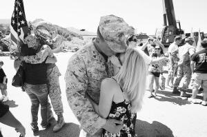 9月2日,在美国加利福尼亚州的彭德尔顿营,结束在阿富汗任务归国的美军士兵亲吻爱人。 当天,有大约270名在美国海军陆战队和海军服役的士兵结束在阿富汗长达12个月的任务回国。 新华社/法新