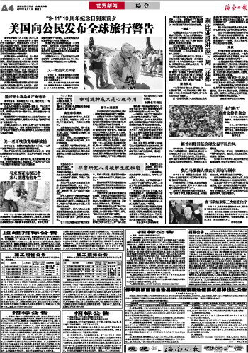 海南日报 世界新闻 综 合 004 2011-09-041 2011年09月04日 星期日